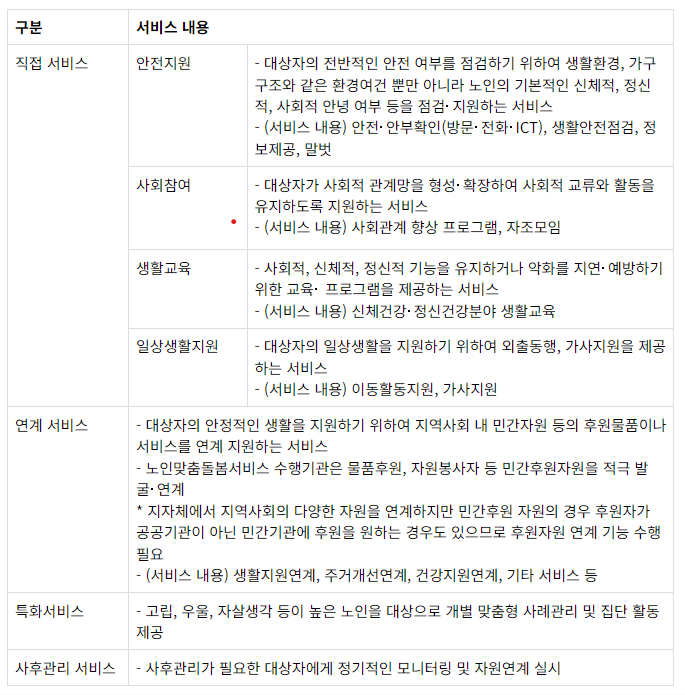 1) 대상 : 65세 이상 기초생활수급자 및 차상위계층, 기초연금 수급자 등 거동이 불편한 노인