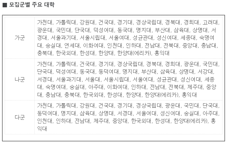 정시 전형기간: 가군 9일~16일, 나군 17일~24일, 다군 25일~2월 1일