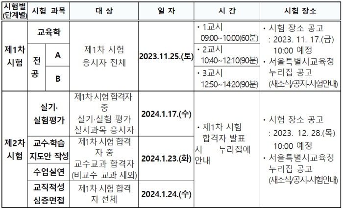 2) 【공고】 서울특별시교육청 누리집 (새소식/공지-시험안내)