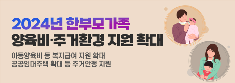 2024년부터 한부모가족 지원이 확대됩니다. 여성가족부는 한부모가족의 경제적 부담을 덜고, 자녀 양육과 자립을 지원하기 위해 복지급여 지원과 주거안정 지원을 확대합니다.